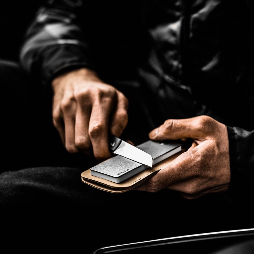 Designed with our love of minimalism in mind, the WESN Pocket Sharpener strips away the bulk of traditional sharpening stones in favor of a slim, pocket-sized plate built to travel anywhere your knife does. Light enough to disappear into a pack or pocket, capable enough to bring your edge back when it matters.