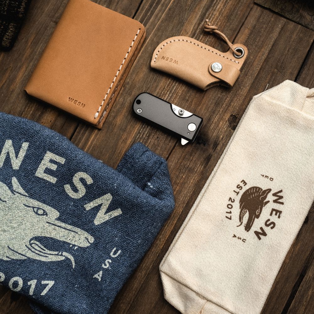 Inside you’ll find a Microblade of your choosing, a natural leather sheath, our minimalist wallet the Forsta, the Wolfpack Work Rag, and a WESN Storage Pouch to keep it all together. Buy as a bundle and save 25%.