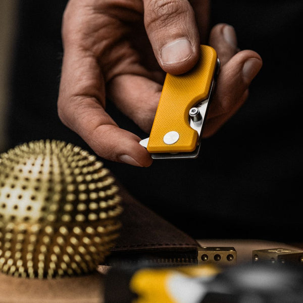 Our flagship knife has been turning heads since 2017. In design, we set out to create a blade that had the practicality and versatility of a full sized pocket knife - but at a fraction of the weight, and just the size of a house key. Besides that, it needed to be made of premium materials, and able to be carried with you for a lifetime.