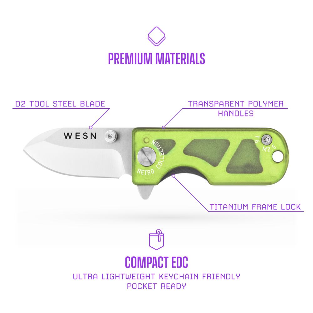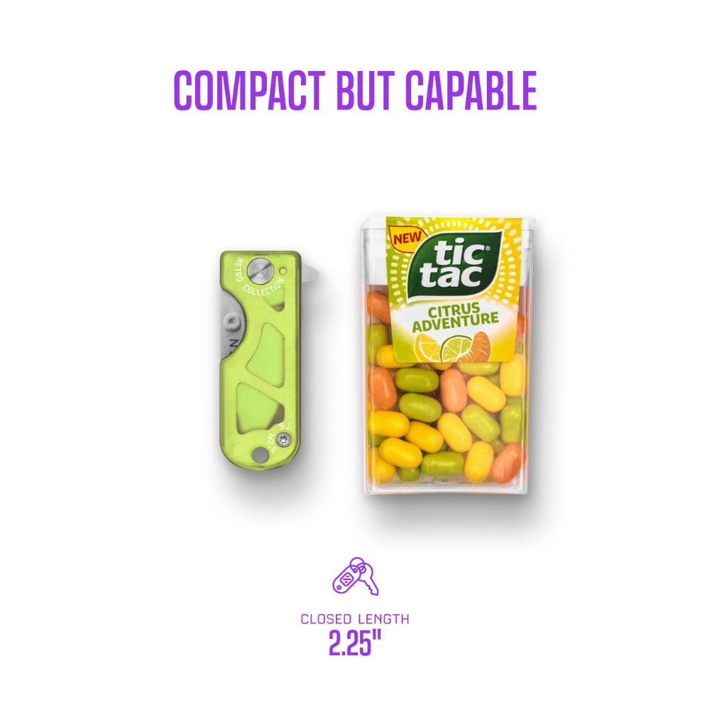 The Voltage Green Microblade takes our compact keychain blade and pushes it into retro territory.