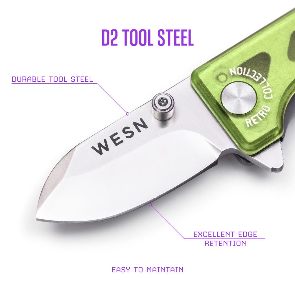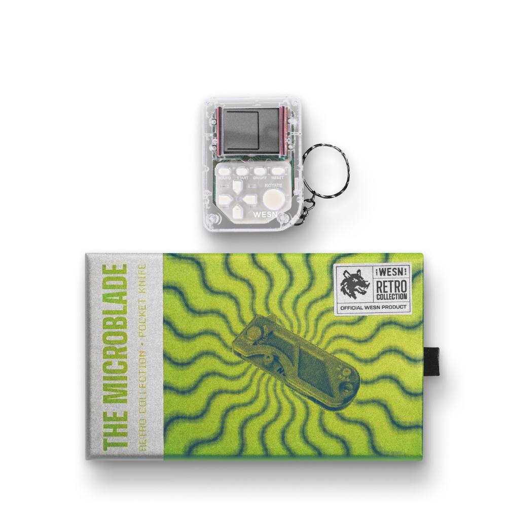 Each knife in the Retro Collection comes with a WESNBoy - a small, functional keychain gaming device featuring a selection of 8-bit games. It’s designed to extend the experience beyond the knife itself, drawing from the handheld gaming culture that inspired the collection.