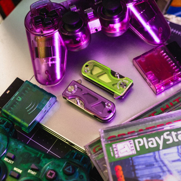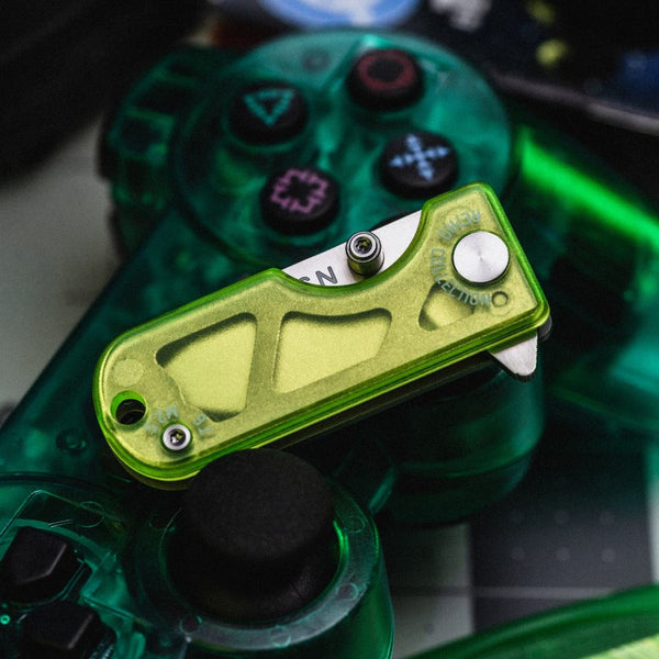 We’ve merged the nostalgic design of see through 90s electronics into our latest range of pocket knives. These tools feel exactly how you remember your old N64 controller or Gameboy - or even better.