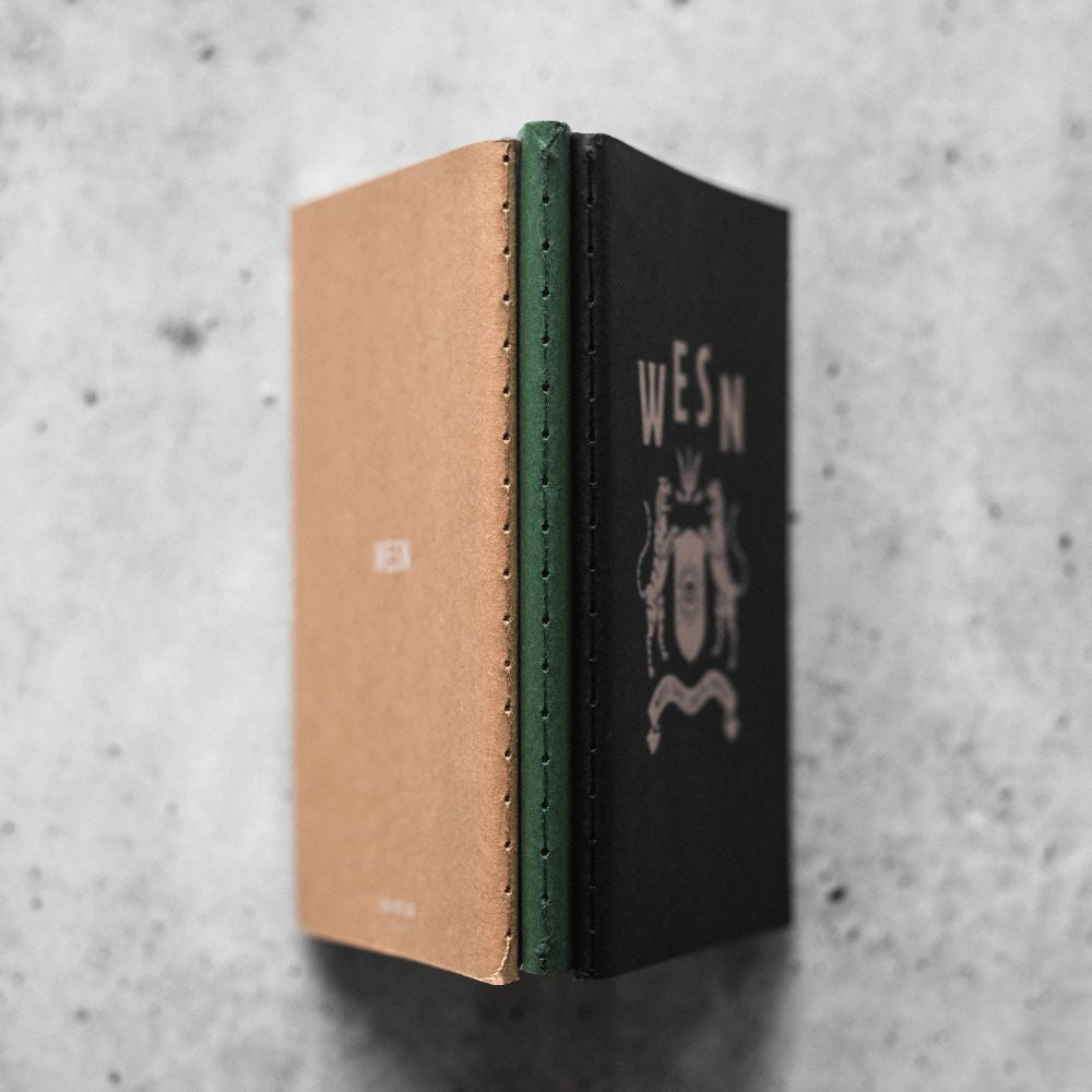 The WESN Three-Notebook Bundle features original WESN artwork and is designed to be carried, filled, and lived with - just like the rest of your gear. Compact enough for a pocket, capable enough for whatever the day holds.