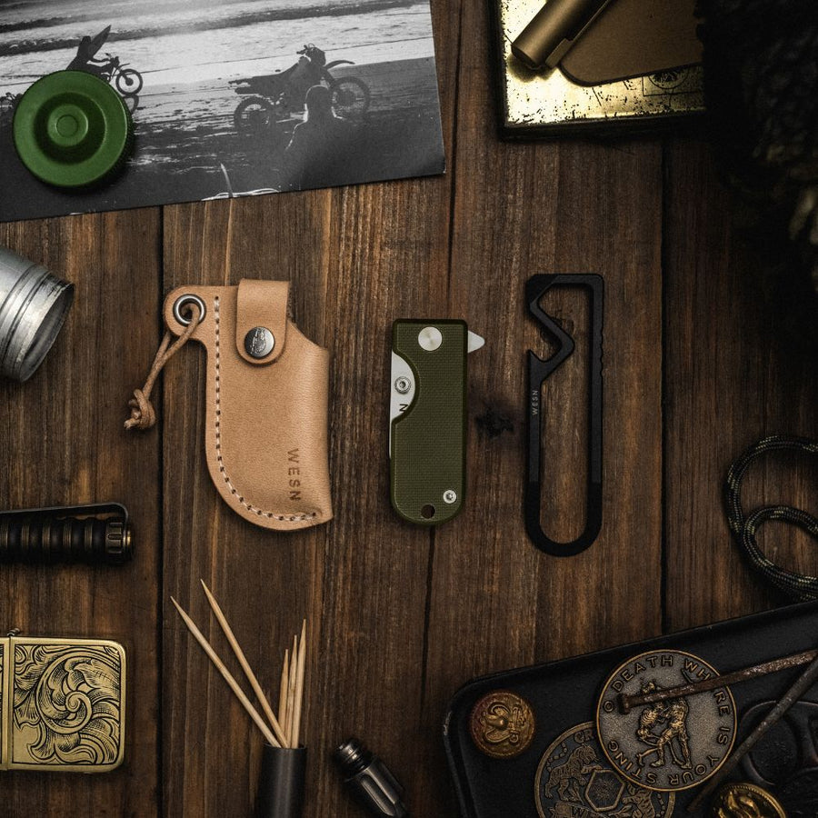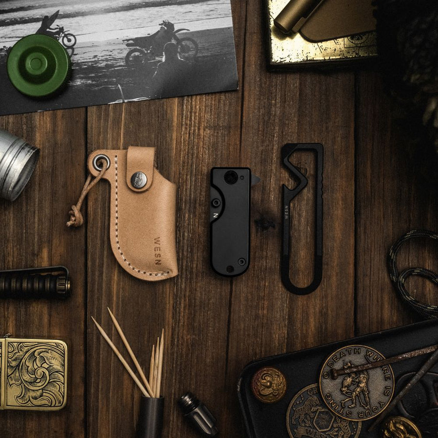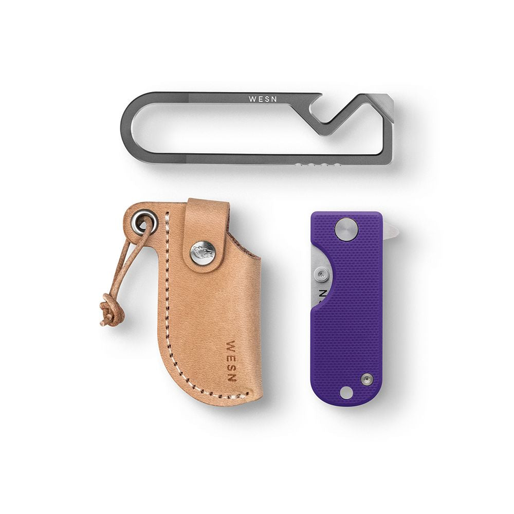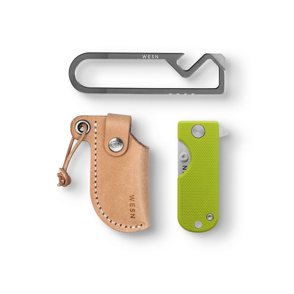 The Starter Kit Bundle is a simple, no-frills way to get more gear for less - and the ideal introduction to WESN. Inside you’ll find three of our best sellers: a Microblade of your choosing, a natural leather sheath, and our MT keychain multi-tool. Built to be used every day. Backed for life.
