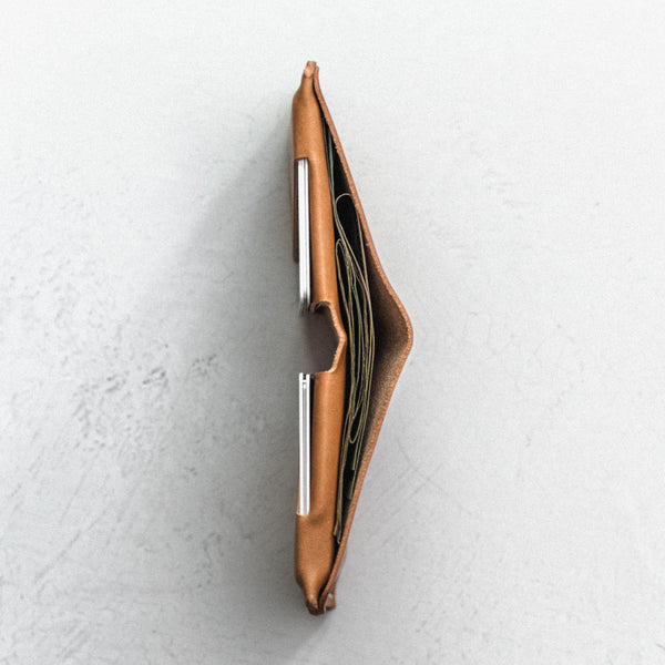 The Forsta's slim design allows it to maintain a low profile. With four pockets — two partially covered in the front, and two behind — you can comfortably carry 1-16 cards. Lying behind is the 'Junk Drawer', a compartment with room for folded cash, or anything else you can fit in.