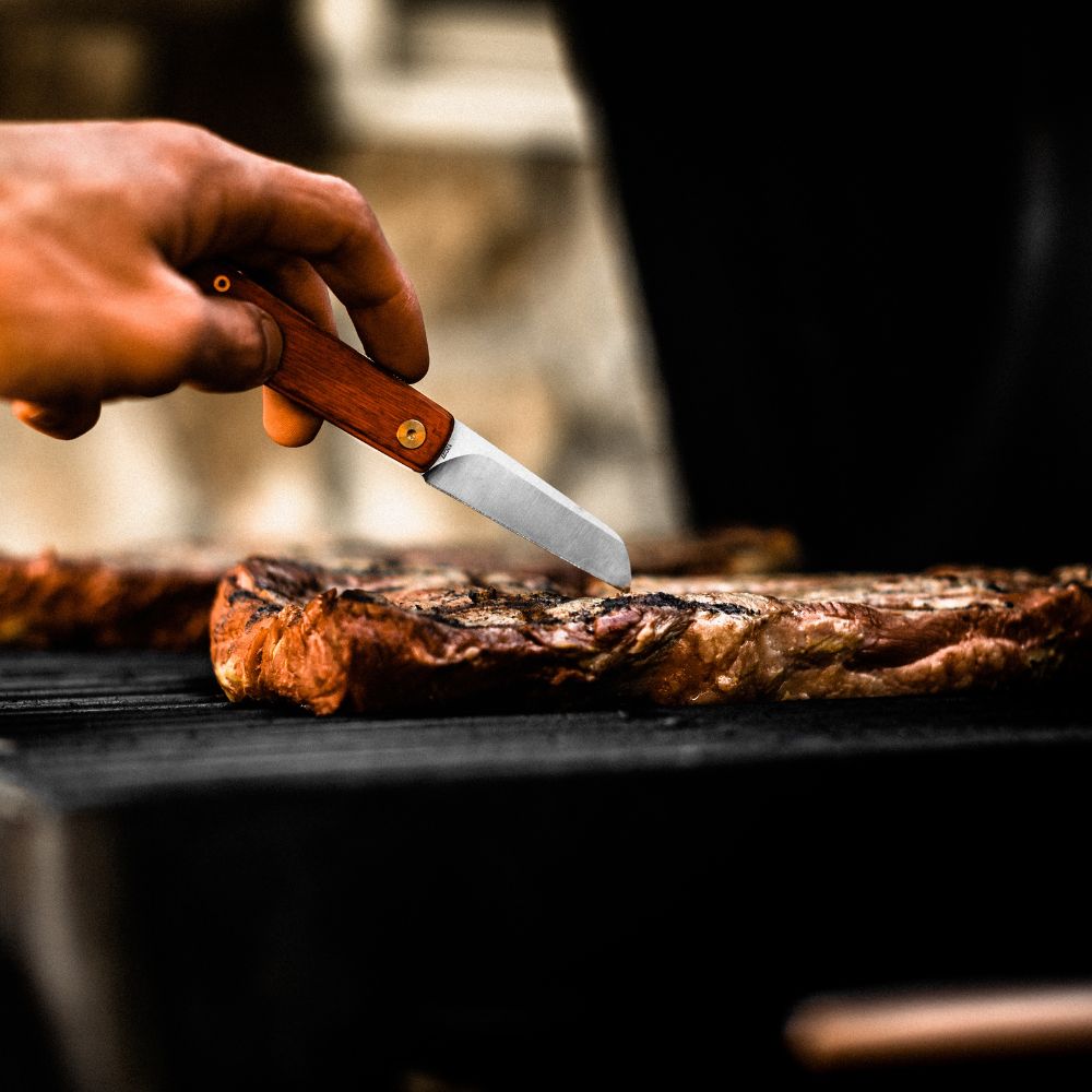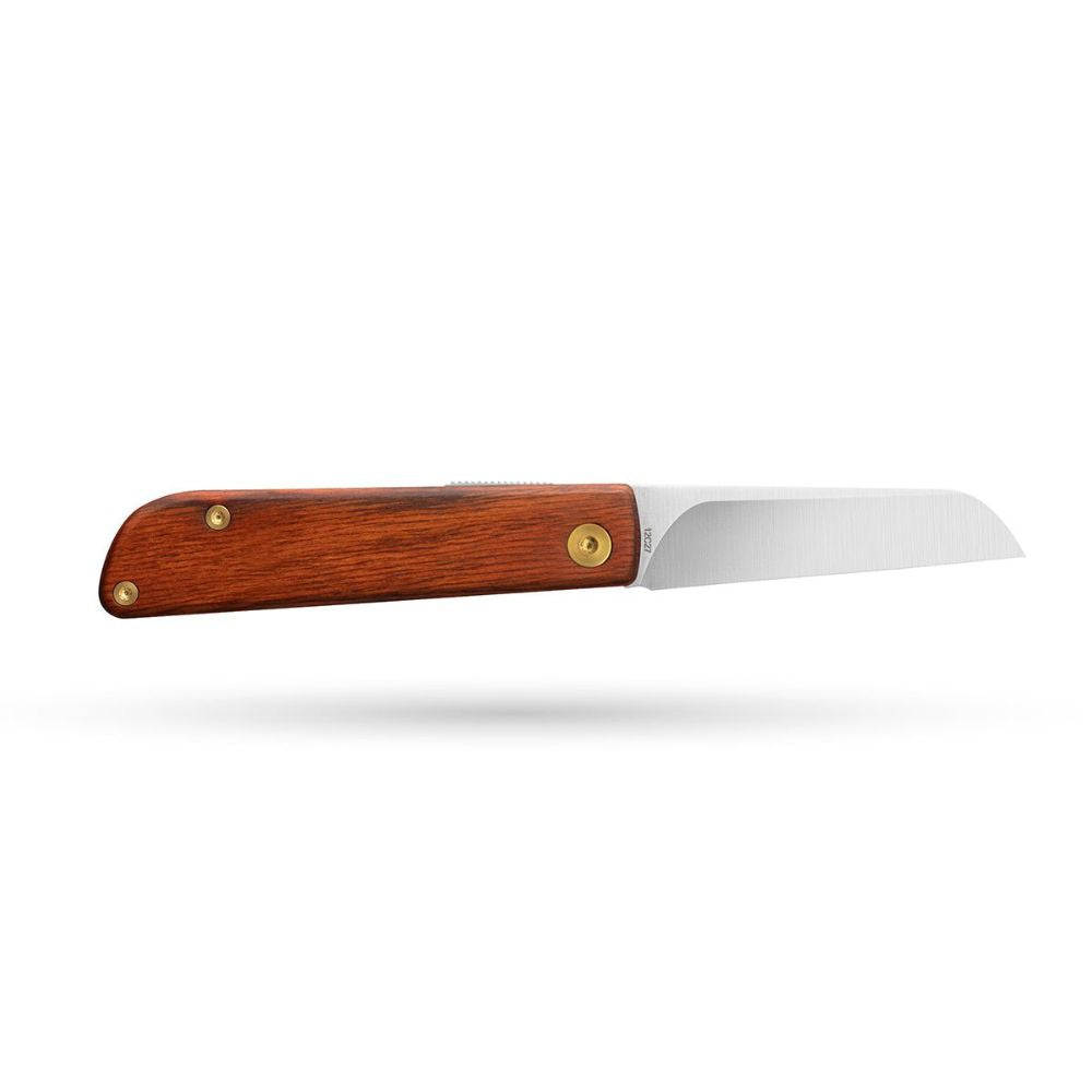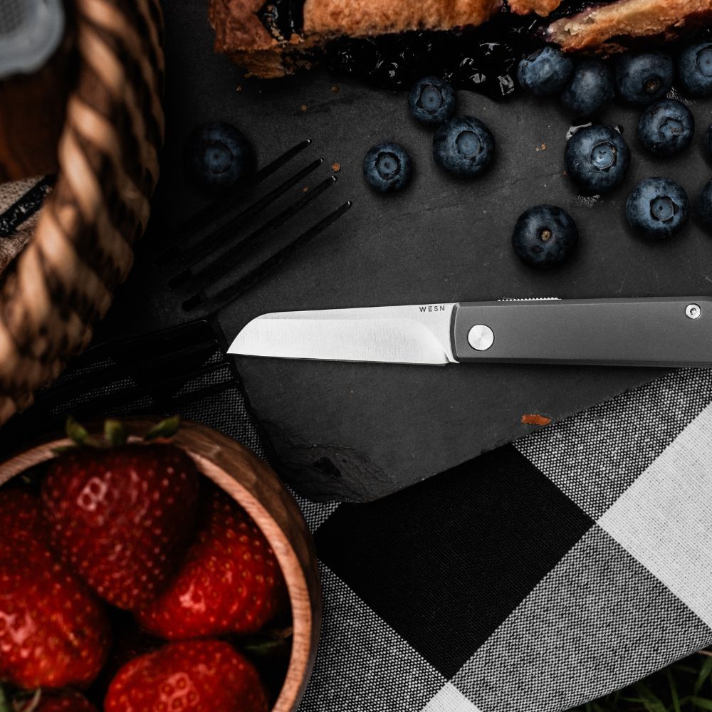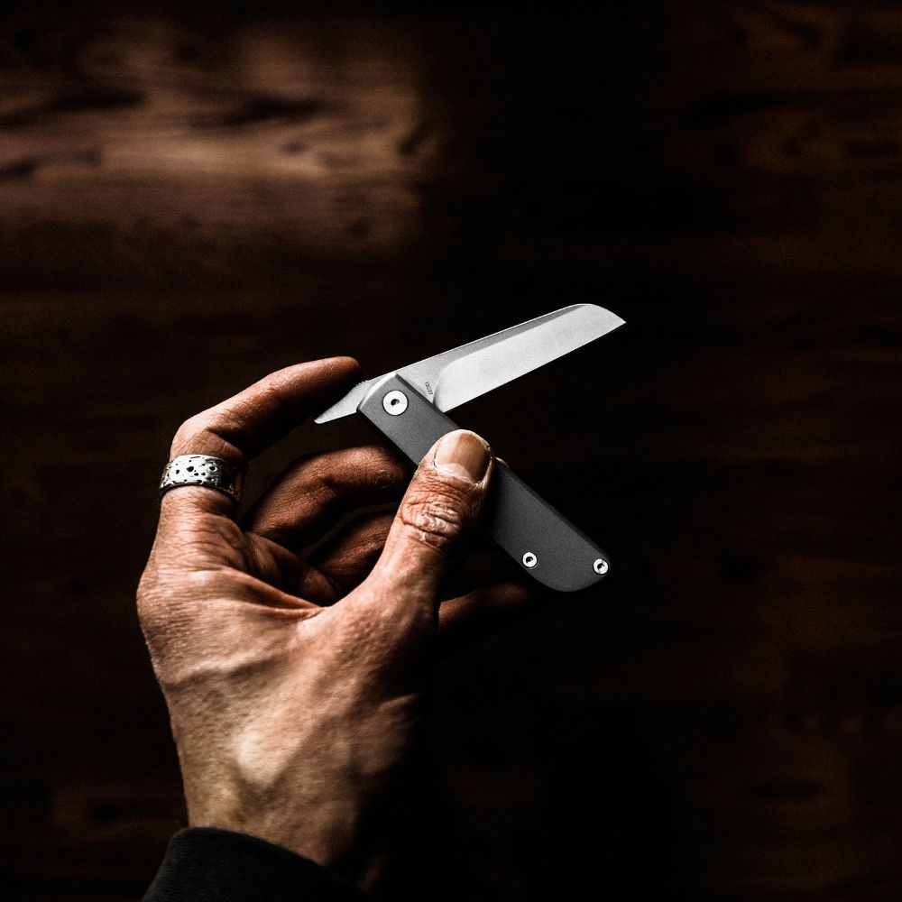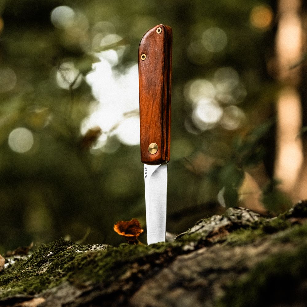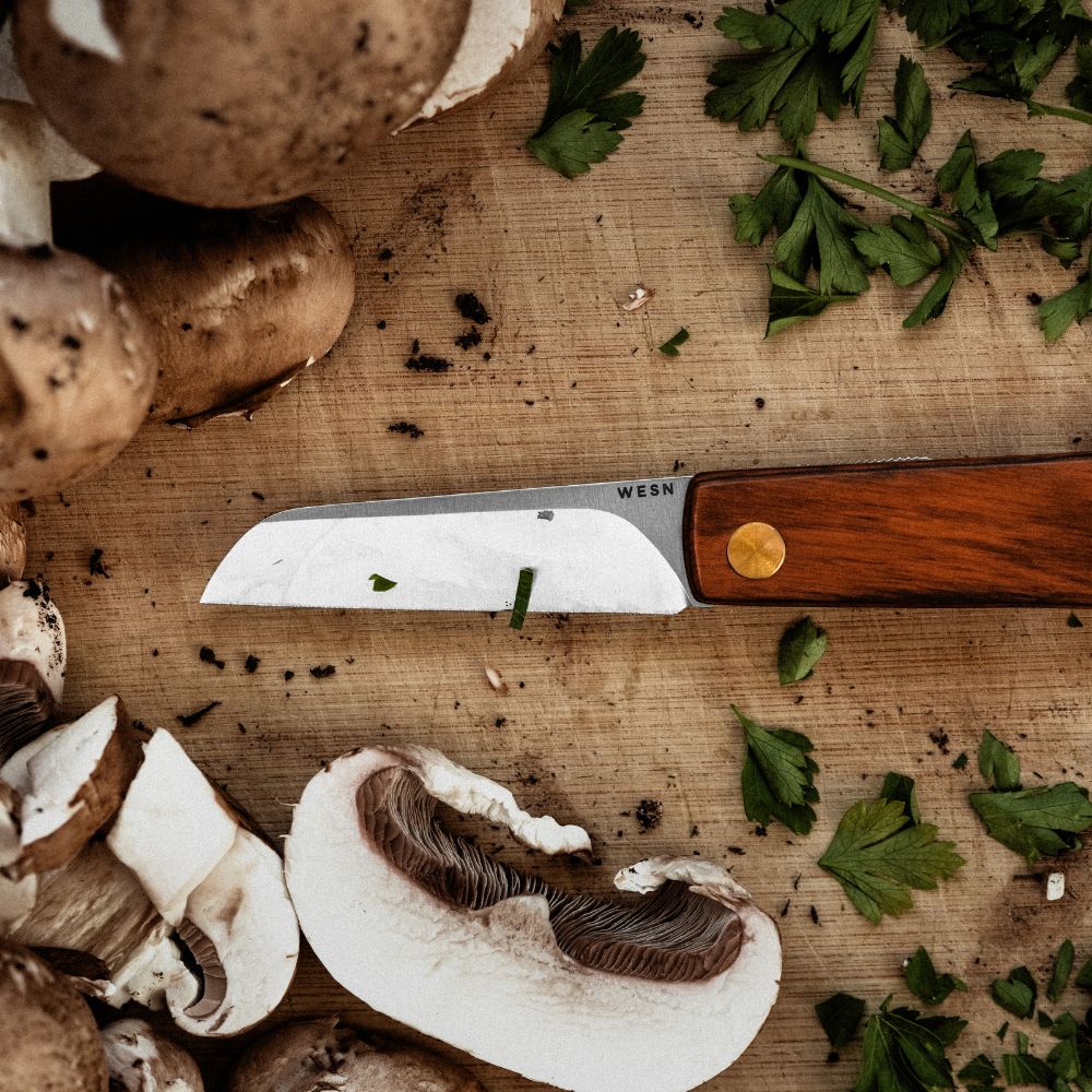 A flat blade means a clean cut on a cutting board. Inspired by the Scandinavian culture of life in symbiosis with nature, and the foraging that is at the center of it, we bring you the Samla — a friction folder for food prep and foraging.