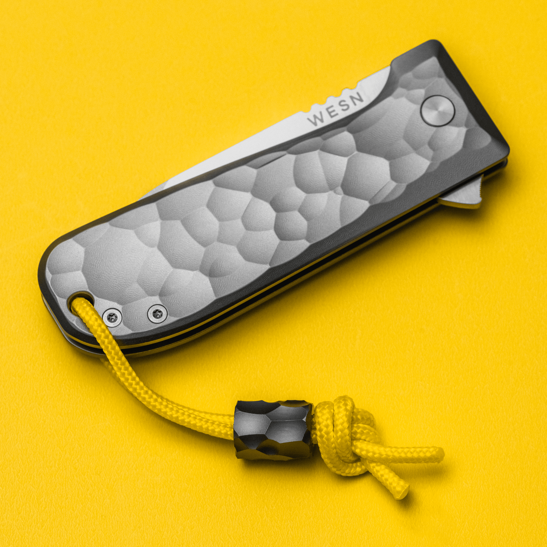 Each Ridgeline Allman includes a meticulously designed and mountain-inspired Grade 5 Titanium lanyard bead, & yellow lanyard string.