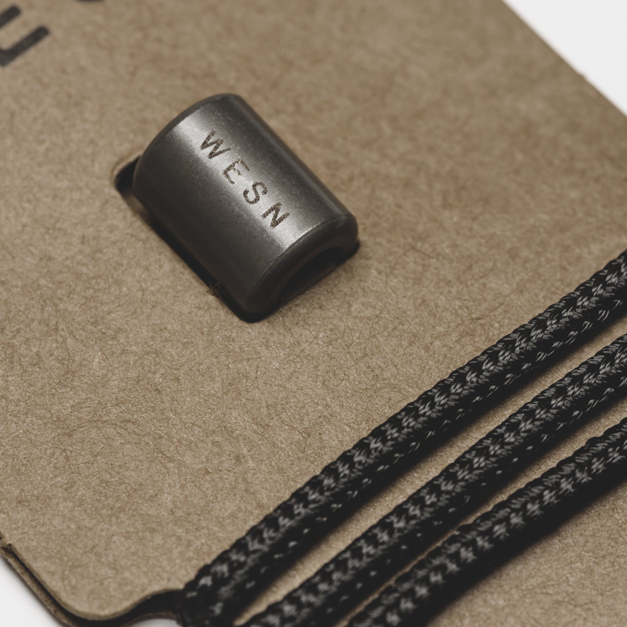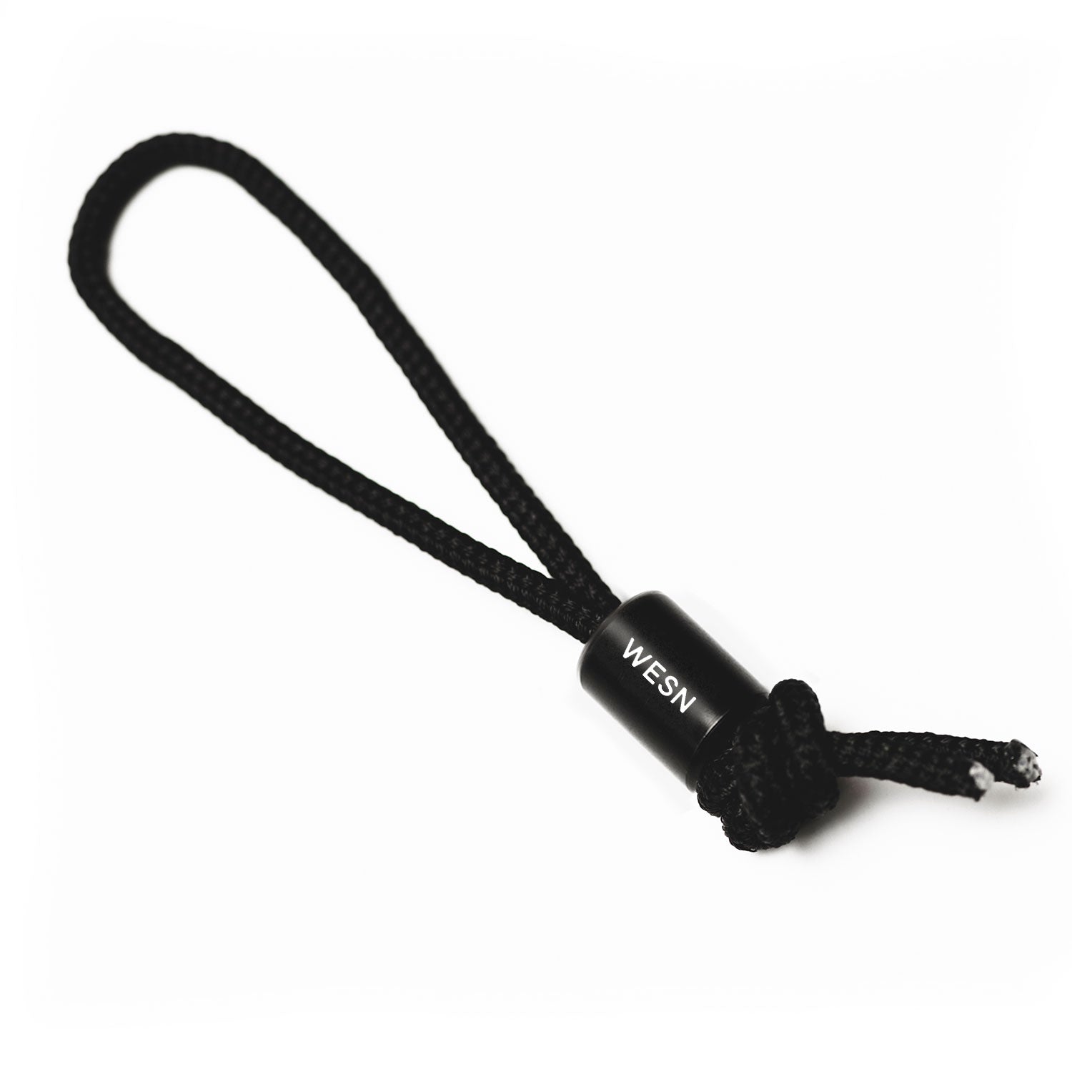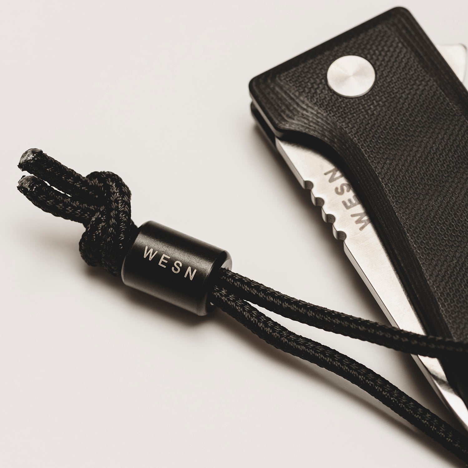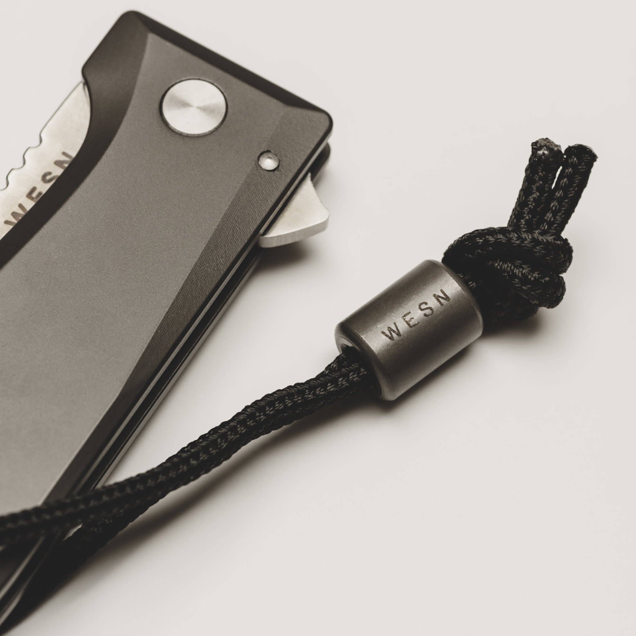 The WESN LB is a stainless steel lanyard and bead that is comfortably suited to fit through the small hole near the bottom of your WESN knife. Not only does the LB add a bit of flare to your WESN blade, it allows for easy retrieval from any bag, pocket, or space you may set your knife.Â