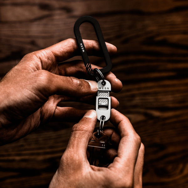 Life gets hectic, requiring us to maximize every moment. Enter: the QR! Machined from two ultra-durable titanium pieces and heat-treated for ultimate longevity, the WESN Quick Release Keychain liberates your keys (or other nifty doodads) with unprecedented fluidity. Plus, its slim design ensures your keychain stays classy AF and stays under the radar.