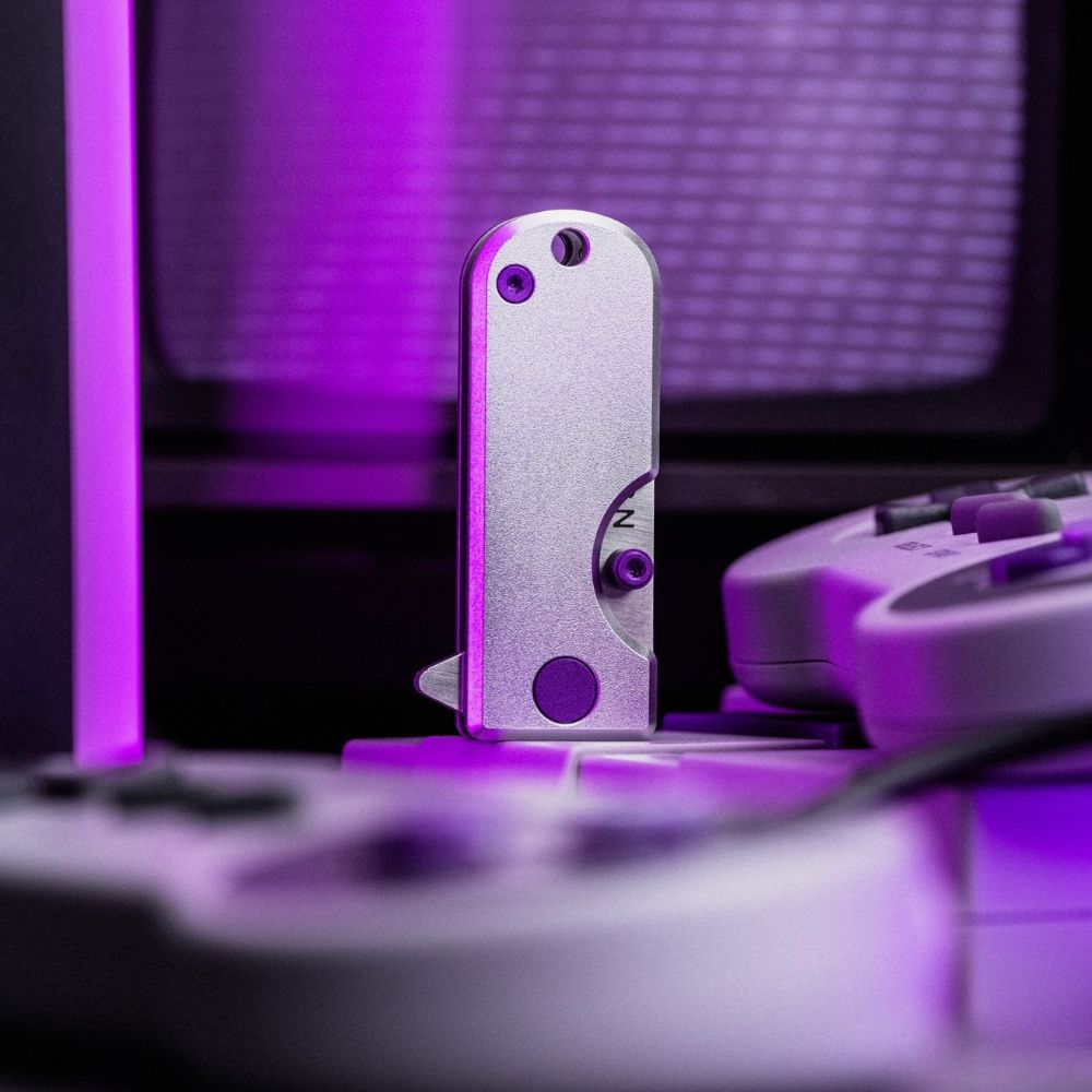 Silver and purple, a color combination made in retro heaven. From Nintendo to Sega, it's tried and true - and now the WESN Microblade has joined it's elegant ranks. With a dual aluminum and titanium handle channeling the likes of the consoles of old - this blade is a must for any collector or gamer.