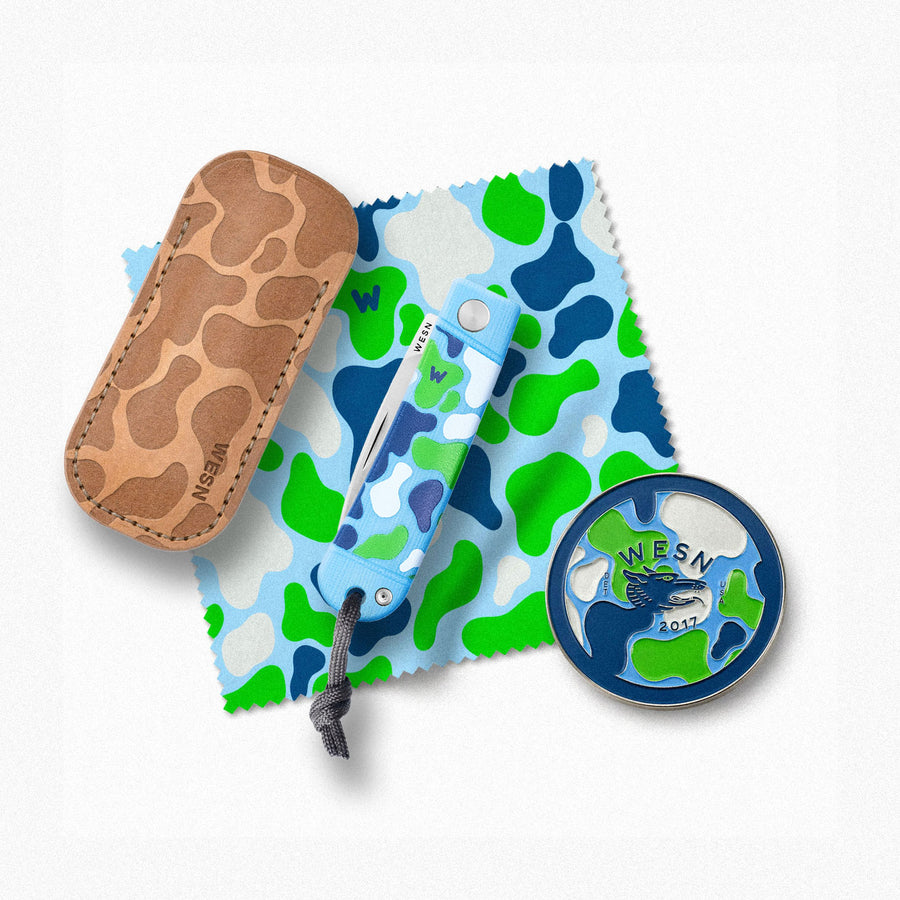 To complete the package, we’ve also partnered with local makers to create a custom coin and Microfiber cloth adorned with this collection’s camo pattern on them.